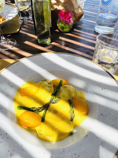 Low quality food, bad service. I went there with a group of 9 people. One of us is on strict gluten free diet for health reasons. We discussed that with the waiters before placing the orders. despite that, they brought the starters, that would have been otherwise gluten free, on top of bread. We had already waited nearly one hour at that point (for cold cuts and local cheese) and so we didn't ask for replacement. For the main, some of us ordered pizzas and some other took pasta or grilled fish. The pizzas arrived way later (c. 30 minutes later) than the pasta dishes, and so we could not eat together. All pasta dishes were tasteless, I guess they had finished the salt in the kitchen, and my request for spicy oil (to try to give back some taste to my dish) was gratefully ignored. To complete the experience, the waiter who served us the wine had horrible stains on his shirt. Not going back, and it's a pity, because the restaurant is beautiful and very close to our...
