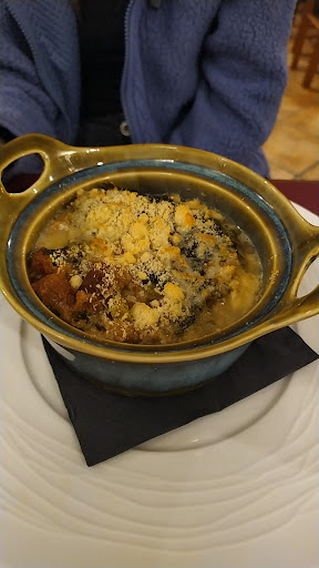 Read moreMolto soddisfatto. Personale attento e competente. L'attenzione ai dettagli e alla qualità degli ingredienti è una regola di casa. Dalle presentazioni dei piatti e della carta dei vini al carrello dei formaggi l'attenzione al cliente non manca mai. Il cestino del pane è un variegato di grissini, pane bianco e pane di grano saraceno. Il personale ti accoglie con degli assaggi molto gustosi come fettine di melanzane con tomini. In due abbiamo iniziato con tartarre (presentata in 3 versioni tartufo, capperi e uova, bagna cauda) e cipolla caramellata con crema di toma e crumble di salsiccia e amaretti, continuato con una zuppa di cavolo nero e toma, un piatto di tagliolini al ragù bianco di coniglio e peperoni. Due calici di vino rosso trentino, ottimo consiglio. E una creme brulé. Ma eravamo sazi già a...
