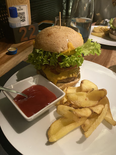 Esteticamente il locale è curato in modo originale. La selezione delle birre è molto vasta e adatta a soddisfare tutti i gusti, per quanto riguarda il cibo ci sono alcune pecche: gli arancini in realtà sono piccole polpettine di riso, non danno nemmeno la possibilità di essere gustate; -l'hamburger da comporre in realtà non è proprio vero e proprio hamburger ma risulta più un panino a causa del pane non classico da hamburger ma più vicino ad una ciabatta (foto) inoltre anche la farcitura non era abbondante e gustosa, inoltre abbiamo chiesto di cambiare le classiche patatine che accompagnavano il panino con quelle aromatizzate al tartufo, presenti nel menù, puntualizzando che avremmo pagato il sovrapprezzo, ma a causa di un "presunto" fraintendimento ci sono state addebitate per intero senza che comunque le patatine classiche ci fossero state servite; -l'ultimo piatto, "l'outsider" (foto) presentava un wurstel piuttosto freddo e le "patatine cacio e pepe" avevano ben poco di cacio e pepe, a suo favore la carne dell'hamburger era buona e cotta a puntino! Ottimi invece i dolci! La loro salsa piccante è davvero piccante e molto gustosa! Il personale comunque è efficiente e disponibile nonostante il malinteso. Lo consiglio quindi piuttosto per una birra o un dolce piuttosto che per...
