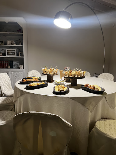 Per il nostro matrimonio, semplicemente non potevamo scegliere di meglio! Location favolosa con un’ambientazione esterna meravigliosa, con colori bellissimi anche nei primi giorni d’autunno, e locale interno davvero di gran stile. Allestimento interno ed esterno impeccabile. Staff attentissimo, e molto disponibile e cordiale. Qualità del cibo molto elevata e più che soddisfacente in tutte le sue fasi: dal buffet iniziale, ricchissimo di stuzzichini gustosi e anche ricercati, passando poi per il menu in sala, con piatti gourmet a base di carne, ricchi e gustosissimi, da farci il bis ed il tris, con selezione di vini fatta a dovere, e sorbetto di loro produzione da leccarsi i baffi. Torta nuziale meravigliosa e buonissima, accompagnata da una bellissima confettata. Ricchissimo e delizioso buffet serale, con grande varietà. Per finire con un lussuosissimo servizio rum, sigari e cioccolato, in cui il maître Andrea è stato bravissimo a spiegare e consigliare, e con un buffet di cocktail per concludere la festa in grande stile. Tutto organizzato nei minimi dettagli e senza lunghe attese, per rendere più leggera una giornata che, per gli invitati, sappiamo essere a volte un po’ pesante. Per quanto riguarda il prezzo, visti soprattutto gli aumenti nei costi dell’ultimo anno, la paura di incappare in qualche brutta sorpresa c’era, ma alla fine siamo stati ancora una volta piacevolmente sorpresi!! Abbiamo ricevuto grandissimi complimenti dagli invitati, che non possiamo far altro che girare a Loris ed Elisa, che, sin dai preparativi, sono sempre stati super disponibili ad ascoltare le nostre richieste e a darci i loro preziosissimi suggerimenti! Felicissimi di esserci affidati a loro! Ci hanno regalato una soddisfazione enorme nel giorno più bello della nostra...