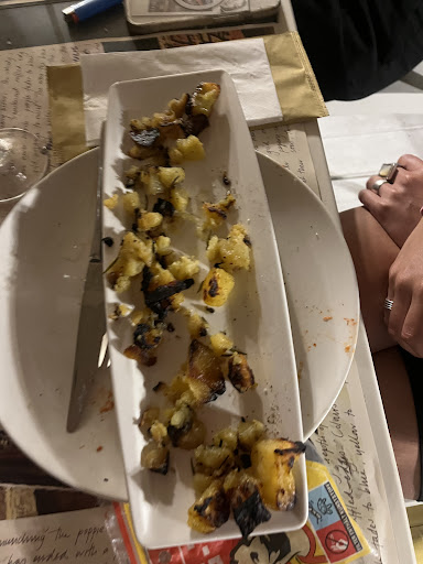 Read moreVeramente pessimi ed incompetenti nella gestione. Avevamo prenotato un tavolo per 7. Quando 2 di noi sono arrivati, dopo aver detto il cognome hanno chiesto "quanti siete?", e questo già fa capire che forse la prenotazione manco l'avevano presa. Ci fanno sedere ad un tavolo all'interno, "apparecchiandolo". In realtà mettono solo le tovagliette senza né posate né bicchieri né SEDIE. Nel frattempo arrivano gli altri, che ci avvertono che la prenotazione era per un tavolo all'esterno. Quindi chiediamo il cambio di tavolo e per preparare il nuovo passa MEZZ'ORA. Andiamo al tavolo ma ormai s'era fatto buio quindi il mare non si vedeva, avevamo una bellissima visuale sugli scogli pieni di mozziconi di sigaretta. I tavoli erano così ammassati che praticamente ero seduta in braccio al signore dietro di me. non riuscivo neanche a spostare la sedia per sedermi perchè la stessa aveva i braccioli, l'ho dovuta cambiare IO con una sedia di un altro tavolo senza braccioli per sedermi, e anche così ero strettissima nel mio posto. da notare che per 7 persone hanno sistemato soli 2 tavoli (ma se non c'è spazio all'esterno per un gruppo di 7, dillo quando prenoto!!!) quindi due persone erano a cavallo tra 2 tavoli. non solo era scomodo, ma i tavoli erano ad altezze diverse, quindi uno era più alto di 5 centimetri, scomodissimo! apparecchiano di nuovo il tavolo, anche stavolta senza posate. ordiniamo, ma per metà dei piatti mancavano gli ingredienti, e ce lo sono venuti a riferire a mezz'ora di distanza per ogni cosa che mancava. il cibo quindi è arrivato tardissimo. e quando è arrivato, mancavano le posate per mangiare. il tempo di portare le posate, tutto si era raffreddato. le posate le hanno portate direttamente dalla lavastoviglie tutte incartate in un unico tovagliolo (manco i tovaglioli avevamo sul tavolo). e hanno portato solo le forchette e non i coltelli.