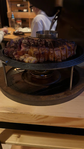 SERVIZIO: L'impressione è che sia tutto un "vorrei ma non riesco", ovvero vorrei essere un ristorante di alto livello (prezzo, qualità e servizio) ma la preparazione manca e l'esecuzione è disastrosa, ad esempio il coperto a caro prezzo (5€ se non ricordo male) e allora apparecchiano il bicchiere con il guanto da alta ristorazione (giuro viene fatto una volta seduti!) però poi il concetto è di "steak house" con il tavolo in legno non apparecchiato per cui la confusione è evidente nel concept e nell'esecuzione. Il tovagliolo di stoffa viene poi inspiegabilmente cambiato a fine pasto chiedendo di inserirlo in una vaschetta di legno a mò di offertorio per poi fornirne un altro dove viene spruzzata un'essenza non meglio presentata. Alcuni dolci e croccanti d'assaggio vengono portati con un carrellino (...) e presentati in modo solenne nel mentre sopra il nostro tavolo un monitor mostra una telecamera a circuito chiuso che inquadra le cucine e in particolare la griglia dove vengono cotti i tagli scelti. Ad oggi il mix di queste scelte non mi è ancora chiaro né purtroppo dà l'effetto sperato ai clienti. La sensazione è che l'identità di questa bisteccheria non sia chiara neanche a chi l'ha studiata e realizzata.