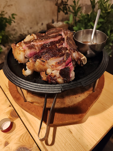 La selezione di carni è straordinaria: dai pregiati tagli di lombata italiani (come Chianina e Marchigiana) a quelli internazionali provenienti da Irlanda, Scozia e Finlandia. Ho provato una T-Bone e una tartare: entrambe erano cotte alla perfezione, succose e ricche di sapore, esaltate ulteriormente dalla cottura su forno Josper a carbone spagnolo, che dona un gusto unico. Anche i contorni, come le patate arrosto e le verdure grigliate, sono freschi e ben preparati. Un plauso speciale va agli abbinamenti di oli e vini suggeriti dal sommelier Claudio, che hanno reso l’esperienza ancora più memorabile.