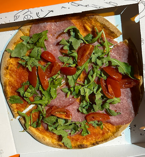Staff che pretende la mascherina dai clienti . Ma loro (pizzaiolo e rgazza addetta ai panini no) .. Loro possono.. E mentre lavorano parlano ridono ecc.. Ma loro possono senza mascherina. La ragazza alla cassa una un guanto di plastica per prendere i soldi. Poi con l'altra mano se lo sfila prendendolo dalle dita per poi condire le pizze. E dio solo sa cosa fa il ragazzo in cucina ovviamente senza mascherina.. Perché loro sii.. Poi se non c'hai la maschera "resta sulla porta te la...