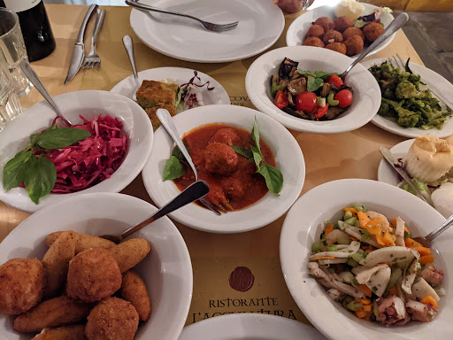 Read moreGreat service but that is about it… We were really looking forward for this dinner and drove 45min to eat at L’acchiatura and perhaps our expectations were to high. The restaurant is beautiful but the food…. We ordered the antipasti tasting: 10 plates of soulless specialties. A great example where quality should prime over quantity but unfortunately it wasn’t the case. For the secondi we had a the mix grilled fish and sea food along with the beef speciality in sauce: The swordfish and the calamari was overcooked and dry I felt like I was eating a shoe sole. the beef was a cold and poorly executed hospital ragu.