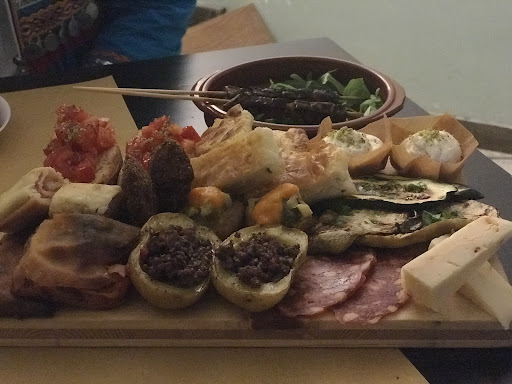 Di nuova gestione…, giovanile ed intraprendente! Beccati per caso, grazie ad una serata di “scuola di vino” promossa sui social!!! Ragazzi che fin dal primo acchito ti mettono a tuo agio, coinvolgendoti tra discorsi e dinamiche spiritose, di… “vino veritas”!!! Servito un buon e ricco tagliere di affettati con focaccia prodotta da loro, selezionando farine di grani antichi e naturali, risultando fragrante e molto digeribile… Assaggiata anche la loro pinsa, con funghi porcini, pancetta ed olive nere, strepitosa!!! Attenti a google vi porterà nella via parallela, parcheggiate in quel punto, tornate indietro a piedi, si raggiunge in 1 minuto (a piedi) girando attorno allo stabile ed entrando in una stradina chiusa, in fondo a dx, troverete questo piccolo ed...