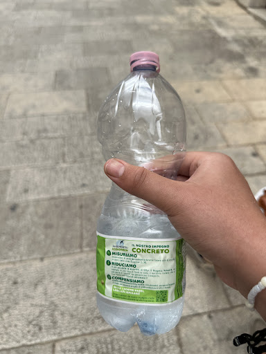 Per non parlare dei favolosi involucri tipici di Ragusa per raccogliere e versare l’acqua: la plastica. Non è possibile bere 3 EURI, signori, tre euri di acqua in una bottiglia di plastica grande quasi quanto la mia mano (e non ho la mano grande).