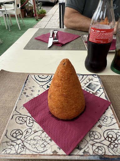Read moreHemos parado para comprar algo para llevar y suerte la nuestra, hemos comido los mejores arancinos sicilianos hasta la fecha. No soy una experta, pero después de haber probado muchas.. éstas marcaron una buena diferencia! Mientras en algunos casos están resecas, aquí son sabrosas y jugosas. Por otra parte, muchas veces el arroz que las rodea debajo de la fritura es blanco y en el centro encuentras el relleno. Aquí parece preparado diferente, el arroz estaba mezclado con la salsa y luego en medio, la bomba sabrosa!! Que feliz, tendría que haber comprado más!! El polpette, ricotta frtta y el panelle di Ceci eran muy ricos también, al ser la primera vez que los como no tengo como comparar. En cualquier caso, lo recomiendo! Seguro que comer algo allí sería muy bueno...