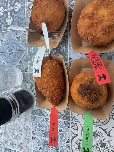 Read moreBest arancini in Ragusa! First off, the staff were extremely welcoming and friendly from the moment we arrived, our server walked through all the options and we chose to share a few of the local varieties and few âclassicsâ. She talked us down from five to four and glad she did because these were the biggest Arancini Iâve eaten! We had some from a few different places in Palermo markets but those do not compare to these. Definitely try the one with local sausage, cheese, and radishes if they have it on the menu (likely seasonal). Neat little outdoor covered patio across the pedestrian street where the...
