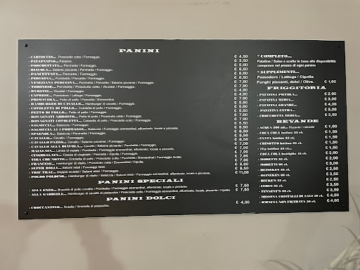 Per me è il numero uno. Sono di parte perché per me Enzo è come fosse un cugino o un amico di vecchia data. Panini della tradizione Luciano ( il compianto papà inventore di tutti i panini che ha sfamato x anni gli affamati avventori della discoteca koala di Marina ). Panini come la porchetta, cavallo pazzo, Rovagnati, torinese, perugina, salsiccia ai 4 formaggi ect che dopo anni sono ancora sulla cresta dell'onda passando 2 generazioni. Enzo è sinonimo di qualità e panino ben piastrato croccante fuori, morbido in mezzo e filante di formaggio dentro. Ovviamente consiglio x tutti " completo" ( kecthup, maionese e patatine). Per chi ha fame consiglio i seguenti panini ( ad ogni nome un programma) : "superdolly" oppure il " tira che notte". Se sei veramente coraggioso ci sono i superpanini che Enzo stesso ti consiglierà. Comunque basta ragazzi, mi sta già salendo...
