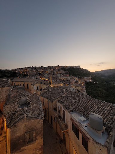 Magic Place in Ragusa Ibla At the end of July 2024, I visited this enchanting spot in Ragusa Ibla for a pizza tasting with friends. The experience was nothing short of delightful, and I strongly recommend it for anyone looking to enjoy a pleasurable evening while admiring the breathtaking sunset and the city’s landscape as it lights up at night.