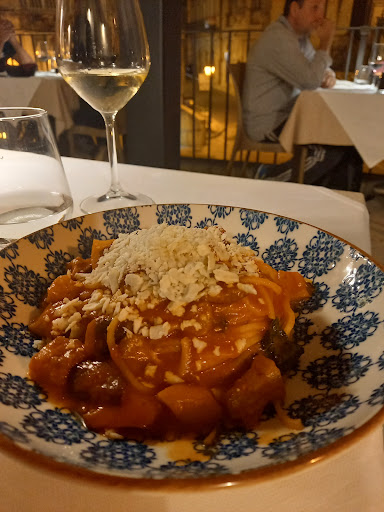 The menu is qritten on a chalkboard in Italian, but for non-Italian speakers it's carefully and patiently explained in English. The food arrived very quickly in our case and tasted absolutely delicious. The wine selection is also very good and I found the wine recommended to me to be very good! For three persons, we ate our bellies full and still only paid about 100€, which is a great prize. I can imagine it goes up to 50 to 60€ per person if you pick yourself a full menu from the starters and main courses, but that depends on the person, I guess. All in all, my commendations to chef and staff, I'm very happy to have been your guest. :) And to everyone reading this review, I highly recommend visiting the Trattoria Agli Archi if you're ever around, it's a great place that I will definitely return to if I ever get...