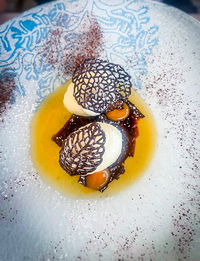 Dessert was a perfect finale. The Bronte pistachio crunch combined rich, nutty flavors with the sweetness of white chocolate and the tangy freshness of maracujá. The ricotta mousse was light and creamy, beautifully complemented by the fruity and citrusy notes of seasonal purée and chocolate-orange cream.