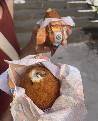 Read moreArancini "original" con la carne veramente ottimi e fragranti! Finalmente mangio un arancino come la cucina comanda. Mi hanno anche preparato sul momento una pasta alla norma abbondantissima e ottima, inoltre abbiamo speso veramente poco! Solo 1.8 euro per l'arancino classico e solo 6 euro per un vassoietto enorme di pasta. Sara una...