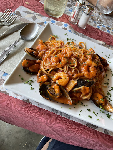Read moreci siamo fermati per caso (essendo di strada) attratti dal nome, il cibo a noi è piaciuto, ero con mio marito, il suo piatto (casoncelli) è arrivato 7 minuti prima del mio (fritto misto abbondante) ovvero quando è arrivato il mio, lui stava praticamente finendo il suo, eravamo solo in due, non mi pare fosse così difficoltoso far uscire due portate nel medesimo momento ma vabbè, il ristorante vero è proprio (visto di sfuggita poi a fine pranzo) è fantastico, ben arredato e ordinato ma d'estate si mangia fuori in un posto staccato dalla struttura (di fronte, oltre la strada) sotto una sorta di tendone, il proprietario ci ha guardato male solo perché avevamo con noi il cane (piccola taglia) e quindi messi lontano da tutti, ti siedi a un tavolino che sembra quello del bar e non si ha nemmeno la possibilità di andare in bagno a lavarsi le mani prima ri mangiare perché, come scritto, dove si mangia si trova dall'altra parte della strada all'interno del ristorante vero e proprio, un minimo di bagno anche sotto sto tendone mi pare doveroso, l'ambiente potrebbe essere indubbiamente migliorato perché era davvero poco gradevole alla vista, tendone in parte cadente, ragnatele, sedie di plastica ammassate in un angolo, zero condizionamento (sarebbero bastate delle pale a soffitto per far circolare un po' l'aria o dei ventilatori a piantana) tutto ciò ha fatto quasi "sparire" la vista lago che si trova proprio di fronte, il proprietario è troppo autorevole e sbarbato, per non dore arrogante, nei confronti dei suoi dipendenti, per fortuna abbiamo mangiato bene e il prezzo tutto sommato era buono, non abbiamo preso secondo/dolce e/o caffè, volevamo solo andarcene in fretta, quindi mi fermo quì,...