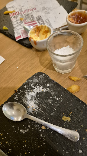 Read moreLocale di tendenza, ma dove!!!!! Porta a vetro sempre semi aperta,essendo inverno. Locale con pareti scrostate dall'umidita',senso di trasandato,avevamo gia voglia di andarcene.Sicuramente gentili si,ma mi aspettavo di meglio.Abbiamo ordinato alla fine due panini tipo supermercato con un po' di salsiccia tagliata ,insomma lo faccio meglio io,patatine come contorno, porzione da fame,ne abbiamo ordinata un altra, provato il tiramisù, ci son cadute le braccia......sempre una mini porzione mignon ,messa nei barattolini di vetro con due pezzi di savoiardi,oltretutto disgustoso.Birre italiane,Conto carissimo ,pagate 39 euro Sinceramente per me buttare cosi gli euro, lo trovo assurdo.Dulcis in fondo il coperto due euro a testa,senza aver usato piatti e posate.Non...