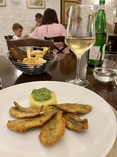 Read moreAttention, Fellow Foodies! Tonight was my second meal at Hostaria Vecchia Rapallo. Five delicious courses that will haunt me until I return. Take note that the wait staff is very knowledgeable to pair the most suitable local wines. I started with warm spinach and zucchini salad. Devine! Next was pear ravioli. Ambrosia fit the the gods! Next in the lineup was langoustines with cherry tomatoes and olives in an amazing broth (yes, I am embarrassed to say, I let go of my normally good manners and sopped up the broth with bread). A beautiful baby green mixed salad cleared the palette. For dessert, I chose tiramisu (the prior night was Peach sorbet in port). Both desserts were delightful. I ended with a limoncello for its digestive qualities. Bravo to the chef and the wonderfully attentive wait staff! Also, I would like to add that I am a “mature” woman traveling these last two days alone. They made me feel welcome and taken care of....