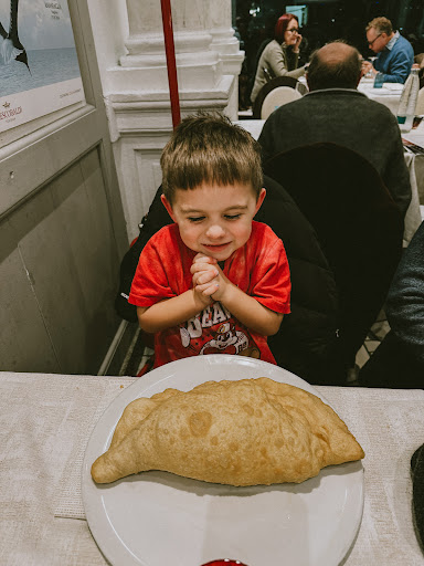 Read moreThis is a great restaurant in a great location in Rapallo. The prices are very reasonable (coming from a family with three kids). The atmosphere is pretty laid back, so it is kid friendly. We also like that there is a big variety on the menu. One of our favorite aspects of Vesuvio is their friendliness. The staff are very friendly and patient. They interacted with our children and were patient with the little Italian we knew. We highly recommend the fried calzone (see the attached picture), itâs unlike anything you can get at other...