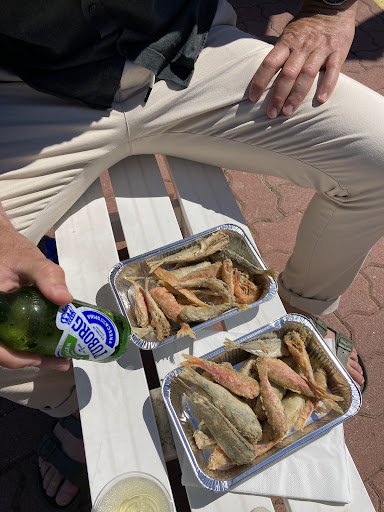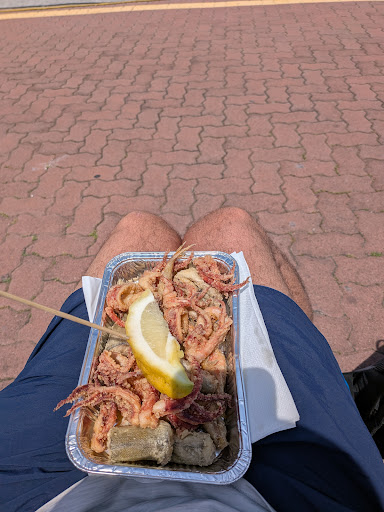 Mon dernier souhait pour notre dernière journée à Rapello était de goûter à cette spécialité Frito Misto. Si vous êtes adeptes des bons et chic restaurants ou il faut s’assoir et être servi comme des rois alors c’est pas l’endroit . Pour les épicuriens, les bons vivants , les gens qui aiment et apprécient les choses simples alors c’est le top . Nous nous sommes régalés, petite barquette de poisson frit chacun avec une bière et un verre de Prosecco pour à peine 30€ . Avec le petit bonheur d’être loin de la foule , nous bord de mer , manger sur un petit banc . Vous commandez , on vous attribue un numéro et puis on vous appelle dès que c’est prêt. Petit couple sympathique, mr cuisine dans son bateau , c’est ce qui donne son charme , poisson frais ( ça fait du bien et c’est bon ) . Endroit fréquenté par les locaux choses qui est appréciable. On recommande , à faire pour ceux qui aiment la simplicité et...