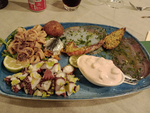 dans une maison du début des années 1900 dans le centre historique de Ravanusa il y a un restaurant accueillant et beau où la cuisine de poisson est l'excellence pour le goût et la créativité, en plus de la très bonne cuisine régionale. Environnement propre avec une pièce...