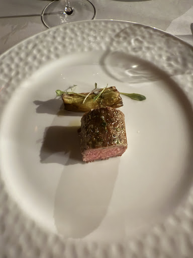 It was a full seating so we were placed inside but with a view to the outside. The setting was beautiful and the servers were top notch. As others have said, it’s a semi prix fixe menu, with recommended wine pairings. My wife and daughters are fish/vegetarians so they went with the “sea” oriented options. I had a more traditional land-focused option with pasta and meats.