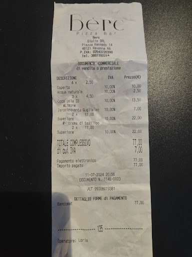 Read moreLocation simpatica, moderna , insolita, sfiziosa , che lascia spazio a future nuove migliorie . Personale gentile . Ho provato la pizza del locale, la berc. Ho assecondato la proposta del personale di provare l'impasto tradizionale. Il condimento è spaziale,con salti di sapori intriganti. L'impasto ,quello tradizionale ,nella parte bordo e verso il centro ha un gusto ottimo, peccato invece che la parte centrale era inzuppata (effetto cartone bagnato) ,forse dell'acqua del formaggio colato al centro, e risulta poco piacevole al palato e difficile da gestire per mangiarla. Ci tornerò per provare gli altri due impasti. Lodevolissima la proposta dei tre impasti, veramente complimenti. L'impasto tradizionale a me risulta di difficile digeribilità e solitamente non lo scelgo e non vado nelle pizzerie che non propongono l'impasto con farine integrali. Da sottolineare l'eccellenza dell'utilizzo delle farine locali prodotte da un mulino Romagnolo, che produce solo farine e paste di altissima qualità. Utilizzo ,per le mie preparazioni,sempre quelle farine soprattutto le farine integrali con risultati sempre gustosissimi. Proverò sicuramente quello integrale che solitamente digerisco velocemente questo poi viene realizzato le farine integrali che ben conosco . Ottima la birra proposta,bionda leggera, non copre i sapori della pizza e l'accompagna affiancandosi. La location spettacolare, mangiando fuori, le pareti che separano dal passaggio sono in vetro e permettono di godere delle architetture locali fra cui i due palazzi che si presentano su due lati completi opposti della piazza. Palazzo Rasponi delle Teste a destra dal locale, di cui si gode la vista della facciata principale, imponente e affascinante e Palazzo Rasponi-Murat al lato opposto che mostra il fianco. Palazzo Rasponi delle Teste è un edificio spettacolare, da visitare, di 5000 mq., voluto dai fratelli Giovanni ( Papa ) e Giuseppe Rasponi fra il 600 e il 700. La piazza , era , in origine , il parco del Palazzo Rasponi delle Teste , poi divenuto parcheggio, poi diventato parco pubblico ma con un un'intervento che non ha nessun richiamo apparente al giardino originale ne alle architetture e alle essenze dei parchi e giardini dei Palazzi del Ravennate. Ma non risulta fastidioso e fa da sfondo alla vista della piazza dal locale. Il locale è stato realizzato all'interno di locali dove anticamente vi erano edifici facenti parte della proprietà del Palazzo Rasponi delle Teste , poi ricostruiti in varie epoche con interventi realizzati in stili e misure diverse , contrastanti e non armoniosi . La vista di insieme risulta oggi fastidiosa , ma non è visibile dal locale. Precedentemente nei locali c'era un ricambista di pezzi di motociclette, dove gli appassionati, come me,hanno trascorso ,parte della propria adolescenza , e "il ciclista" allora punto di riferimento per i ciclisti Ravennati , che vendeva biciclette componenti e accessori e riparava...