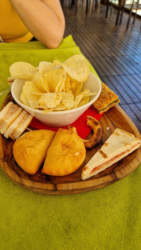 Great location, but THE most rudest woman, thin, black hair, thin angry lips, ugly in her discontent, the worst service that we have ever encountered in Italy or anywhere. Nasty, stressed, short to customers, rude even just because we dared to ask for a menu after 15 minutes of zero service, explaining when challenged why she is that way "because I am alone". Incidentally, she wasn't, there was another woman on the bar and serving, and there was only very few tables occupied, and the bar itself was empty. No apology was offered when Miss Nasty's rudeness was called out. Including her explaining the difference between the taste of the two prosecco- "one is €8 and one is €5", we kid you not, with the worst attitude. It's not our problem you are understaffed, can still be nice to other humans. Then she went on about how we were there yesterday, whatever that supposed to mean (we weren't, first time here, ever), first and last time. Awful service spoils what otherwise is lovely located place. Aperitivo type platter, yukky, stale and rather...