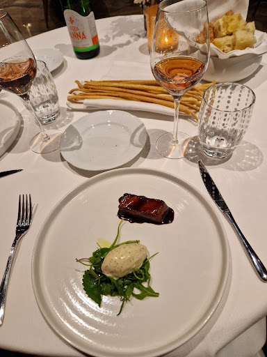 The restaurant in the center of Ravenna pleasantly surprises with its spaciousness – a rarity in Italy, where tables are usually placed much closer together. Here, several meters separate guests, creating a sense of privacy and comfort. The cuisine meets high standards, and the service is attentive and professional. The wine list is not yet extensive for a restaurant of this level, but the thoughtful sommelier explained that the establishment recently opened and is actively expanding its selection. Overall, an excellent place for a gastronomic experience in an...