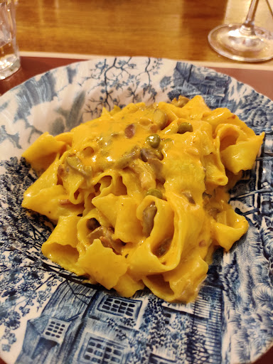 I want to speak fair. But frankly spoken it was disappointing in all categories. The staff was very nice. But the downside: Even nicely decorated the place lacks of cozyness: the room temperature was too cold , the lights too bright and it was drop dead silent, no little music was playing to create a bit of atmosphere. The food, we had a mixed anti pasti set and various pasta and toppings, was not bad, no, but soulless, absolutely nothing special, it was simply boring. Also the ragou traditional had very little meat in it, the bread was boring plain white baguette, not crunchy, not delicious, even the ordered mineral water tasted very very flat, just like tab water. The tiramisu for after was simply not good. The biscuit was not given time to soak in the coffee, it even was still crisp in some parts, the mascarpone on top was flat and tasteless; just not good. I'm sorry to say, but this was the 5th Osteria-style restaurant I tried this week in Ravenna and I does not even rank up to 3 stars, because atmosphere AND food lacked of love and/or knowledge.