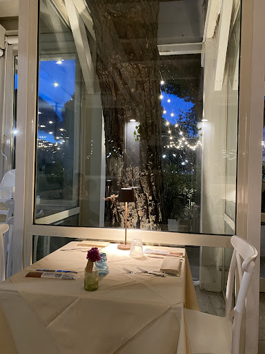Locale che ha cambiato gestione almeno tre volte da quando ne abbiamo memoria, ha avuto identità diverse, cucine diverse, storie diverse, insomma è un posto che sembra non voler mai rimanere lo stesso, un posto che non ha mai avuto radici solide, un posto che sa un po' di malinconico. Questa volta il ristorante è stato accerchiato da un centro padel, mentre mangi non guardi la televisione ma direttamente i giocatori in carne e ossa dietro una campana di vetro; il rumore della pallina che rimbalza può essere sgradevole e fastidioso ma anche piacevole e rilassante. Entriamo perché il profumo è davvero invitante, si sente odore di vongole e prezzemolo per non parlare dell'accuratezza che si posa in tutto il giardino. Primo impatto buonissimo, luci soffuse, piccola veranda chic, piante ben tenute. . Poi però ci sediamo . . accidenti alle formiche, formiche su tutte le sedie. E zanzare, zanzare, zanzare, zanzare, non si capiva se stavamo ballando musica rock o mangiando. Quando finalmente riusciamo a posare gli occhi sulla tavola notiamo una "mise en place" un po' casuale e approssimativa - tavolo elegante ma sacchetti portaposate, calici con il logo del ristorante ma uno diverso dall'altro, così come per i coltelli, graziose candele ricaricabili ma sacchetto per il pane, insomma lo stile era un po' impreciso.