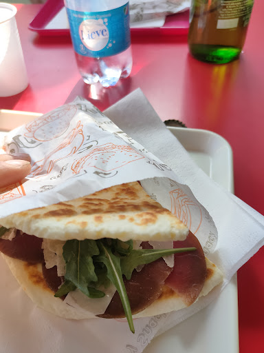 Read moreÈ un chiosco, per cui dalla struttura non ci si può aspettare più di tanto ma comunque ci sono dei tavolini per consumare sul posto. In compenso la piadina è favolosa, almeno per i miei gusti. È del tipo un po' più spesso, morbidissima, si scioglie in bocca, ma sapientemente resa croccante scaldandola senza bruciarla. Provata sia in versione crudo, squacquerone e rucola sia funghi, salsiccia e gorgonzola entrambe ottime....