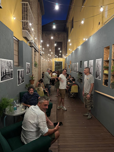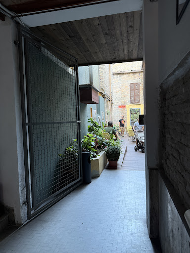 Un luogo nascosto, eppure ben conosciuto dai ravennati! Piccola realtà in un vicolo centrale di Ravenna, raggiungibile passando dietro al Fargo oppire dalla via opposta dove c'è la torre pendente. È frequentato da giovani e anche più adulti, rimane esattamente di fronte alla casa delle marionette. Si respira decisamente un'aria da pub underground eppure con sentori di famigliarità, di tranquille chiaccherate davanti ad un bicchiere di vino o una pinta di birra. Nella saletta al piano terra c'è anche una libreria consultabile oltre che giochi da tavolo (tipo gli schacchi) Ci sono stata qualche sera fa e avevamo prenotato la saletta di sopra per un compleanno. I tavoli sono più grandi e le sedie di legno sono proprio quelle dei banchi di scuola. C'è una panchina verde da giardino e poi una credenza gialla! Molto creativo . Purtroppo la cucina era chiusa, però il proprietario ci ha consigliato di ordinare una pizza lì vicino per poterla mangiare al piano di sopra. Il bar non fa drink pestati, però ha diversi liquori (uno alla cannella molto buono), vini e classico Spritz. Come cocktail prepara il gin tonic e altri classici. Il bagno mi ha ricordato quelle realtà londinesi anni 80, tutto bianco con foto in carta attaccate alle pareti. Proprietario...