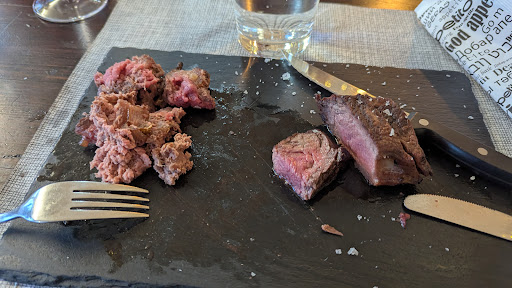 Carne immangiabile come quella di un vecchio toro, servizio gentile finché no n si è presentata la situazione. Avrei dovuto essere un cliente abituale perché abitavo di fronte, ma... niente da fare. Non ho finito il piatto perché non ci...