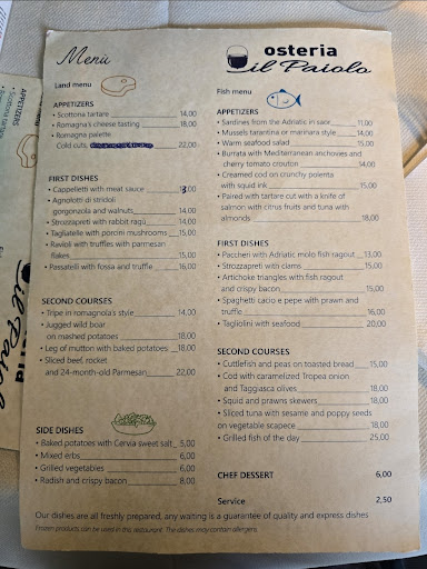 We loved this osteria. We were skeptical because it was right across from the main train station, but the Google reviews were very good, so we booked a table. It was superb! Their motto is "Sapori romagnoli" (Romagna flavors). When the opera singer on the sound system would hit a high note, the servers stopped and held their breathe. That kind of place (in a good way).