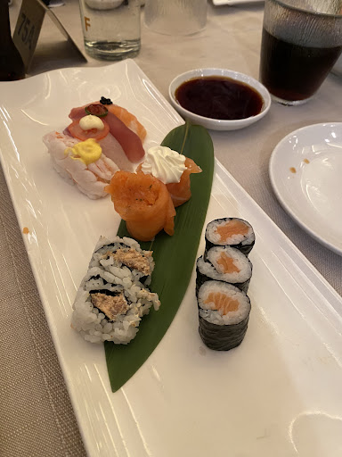 Locale molto pulito, curata l'apparecchiatura, e per le giornate un po' più calde ottima la possibiltà di magiare fuori (anche se con vista rotonda). Il menù " all you can eat"a pranzo(circa 14 euro) e cena (circa 23 euro) è molto ampio di scelte e si ordina tutto dal tavolo tramite un tablet (per ogni tavolo) dove si possono vedere anche le foto dei piatti (per chi non ha già esperienza di giapponese). Ottima l'idea di poter ordinare max 10 piatti ogni 10 Min. In questa maniera si evitano gli sprechi. Le porzioni sono normali e giuste per assaggiare e riordinare ciò che è più piaciuto. Quindi provate e se vi piace riordinate a volontà. I fritti si presentano ben dorati, simbolo che l'olio per friggere viene costantemente cambiato. Anche le cruditee hanno un ottimo...