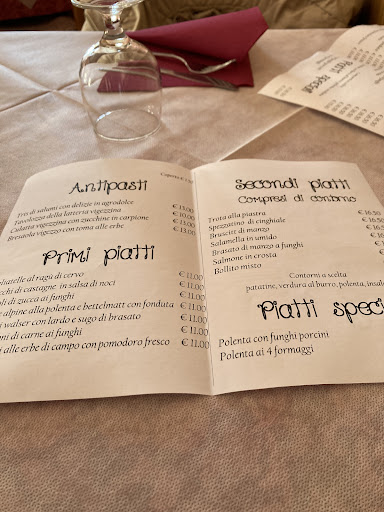 Read moreA pranzo; il menù,alla carta, non presenta molte portate ma, come si usa dire, poche ma buone. Personalmente: abbiamo assaggiato il "tagliere di formaggi di latteria della Val Vigezzo"...semplice ma buono per chi ama il formaggio "casereccio"... accompagnato da miele e composta di arancia; un primo piatto: "delizie di polenta con fonduta di formaggio"....anche qui un buon piatto, ben cucinato e di giusta porzione; poi un secondo piatto....brasato con funghi accompagnato da patatine (patate fresche...tagliate a pezzi) fritte... semplicemente ben fatte e (soprattutto) NON unte; per terminare i dolci: una torta di castagne,servita tiepida con panna, e un semifreddo allo zabaione...e che dire!?!? Ecco...come prima accennato...pochi ma buoni, sicuramente ci tornerei e consiglierei a conoscenti questo posto. Porzioni e prezzi nella...