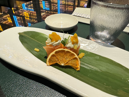 Per quanto riguarda la qualità del cibo, ho trovato il tonno e la ricciola davvero eccellenti, mentre il salmone non era tra i migliori che ho assaggiato. Alcuni piatti sono particolarmente interessanti e originali. Tuttavia, c'è stato un piccolo inconveniente con il GUNKAN Speciale, che conteneva riso soffiato e pistacchio spalmabile dolce, un abbinamento che ho trovato troppo stucchevole e fuori luogo.