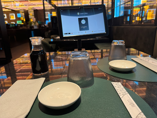 L'ambiente interno di LUMII è davvero elegante e intimo, con un design che rende l'esperienza culinaria molto piacevole. Un tocco moderno e tecnologico è dato dal fatto che si ordina tramite tablet, con un limite di 8 portate a persona e una pausa di 10 minuti tra gli ordini.