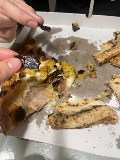 Sono andato ieri a mangiare una pizza. Non conoscevo il locale ma l’ho trovato su ig. Da premettere che ho Telefonato per prenotare per 2 persone. Al mio arrivo mi viene proposto di accomodarmi in sala, peccato che il condizionatore era spento e c’erano 37 gradi più il forno. La cameriera nonché moglie del pizzaiolo mi dice che era inutile accenderlo perché essendoci il forno, il condizionatore non bastava… quindi ci accomodiamo all’esterno. Ovviamente caldissimo e afa al di sotto di una tendostruttura per non menzionare la quantità assurda di zanzare! La cameriera ci vede avviliti e ci avvicina uno zampirone. La pizza? Ho preso quella consigliata da loro ovvero crema di patate porchetta e burrata. Parere strettamente personale, ne ho mangiato un solo spicchio perché era completamente insapore e così anche la margherita del mio commensale. Esperienza da...