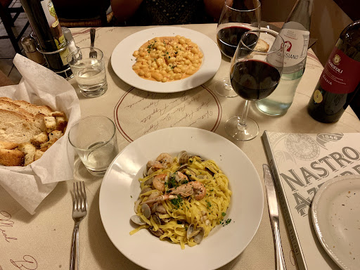 Read moreSono stata in porcili migliori. Peggior ristorante in cui sia stata in tutta la mia vita. Ristorante affollatissimo (soprattutto di ragazzini che urlavano senza ritegno), i camerieri ci hanno messo 20 minuti per prendere l'ordinazione e ben 50 MINUTI per portare i piatti al tavolo. Chiaramente non hanno portato neanche il pane (nonostante il coperto costi 1.50€ a persona). Tavolini in plastica e locale sporchissimo. Non mi è stato chiesto che cottura volessi del mio filetto al pepe verde: risultato, mi è stato servito il corrispettivo culinario di una suola di scarpa coperto da una sostanza biancastra (probabilmente latte e farina), freddo. Non mi è stato dato neanche un coltello (perché chiaramente non era incluso tra le posate in dotazione) e quando ne ho richiesto uno sono stata trattara con sgarbo. Nonostante ció, il prezzo del "filetto" era comunque di 18€. Quando siamo andati a pagare, la propietaria ha chiacchierato per una quindicina di minuti con i clienti prima di noi e, arrivato il nostro turno, sono stata sbeffeggiata dalla proprietaria stessa e dai camerieri per aver richiesto un coltello per il mio filetto (o per aver richiesto il filetto stesso, non mi è molto chiaro)....