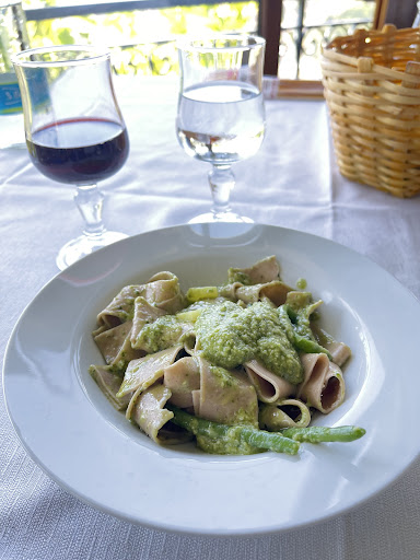 A bit hard to find but well worth the effort! This place has one of the best views on Recco, the food was very yummy and for a very fair price. We had an appetizer to share which was all local cheese, focaccia di Recco, salami, veggies etc. By then we were almost full, but on top of this we got a dish of trenette al pesto and pansotti. After this we were completely destroyed but in a good way. All of this came out to something like 30 euros for two people, with water to drink (although they have a large selection of local wines). I wouldn't hesitate to recommend this place to a friend, although it's a shame that it is a bit out of reach for those...