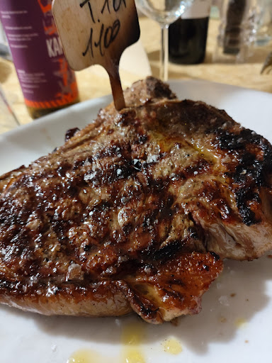 Il ristorante, dal profumo tipicamente toscano, non deve trarre in inganno, soprattutto sulla parte delle carni. Perchè oltre ad un taglio magro di bistecca, come la nazionale, offre anche altre razze a mio avviso ben più pregiate e gustose e, ahimè, sottovalutate soprattutto dai toscani. Nera di prussia, angus americano, scottona irlandese, highlander scozzese.. e tagli "molto coreografici" come la tomahawk (di angus). Carni molto più saporite, alcune di esse con un gusto deciso (anche in base alla frollatura scelta), che garantiscono un sapore persistente. Il tutto, però, in chiave tipicamente toscana, quindi serviti con contorni tipici quali i funghi fritti o la cappella di porcino grigliata e usata a mò di cappello per conservare gusti e aromi della carne nel piatto.