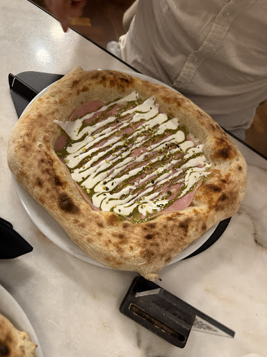 Ogni piatto è una dichiarazione d’amore per la qualità e la creatività. La pizza? Un capolavoro: impasto leggero, fragrante, digeribilissimo, condito con ingredienti freschi e selezionati con una cura quasi maniacale. Ogni morso è un viaggio. Gli antipasti sono piccoli gioielli gourmet (impossibile non menzionare la frittatina con pistacchio e mortadella: pura poesia!).