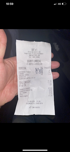 I had a breakfast voucher for this bar from the B&B. That was for a coffee and a cornetto. When I asked for a tea instead of a coffee, I did not receive a cornetto anymore because according to them this did not fit in the price. They only told me this afterwards, after the tea had been served. Very customer unfriendly and a very unpleasant way of doing things. The first time during the tour through southern Italy that they were so...