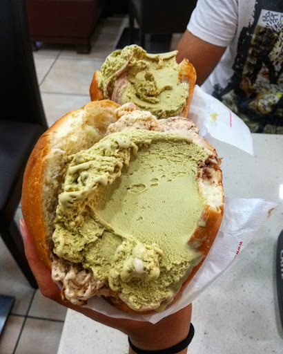 Due stelle su cinque per il gelato. Bar con 6/7 tavolini fuori,lato strada. Dopo aver chiesto la dimensione della coppetta,abbiamo optato per una coppetta media pistacchio,zuppa inglese e stracciatella. Il sapore del gelato nel complesso accettabile (tranne il pistacchio) Personale indaffarato. Nemmeno un sorriso (Tranne il ragazzo che ha portato la coppetta al mio tavolo) La coppetta di "medio" non aveva molto. Quella coppetta in altri locali viene considerata come formato piccolo. Quindi poca quantità di gelato. Brioche vuota, nel complesso morbida.