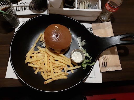 Read moreConfesso che erano un paio d'anni che non cenavo in questo locale, quindi a questa nuova visita il confronto col passato diventa purtroppo inevitabile. Lo ricordavo come un posto dall'ottima cucina, ma ad oggi il mio giudizio è cambiato. Fermo restando che il servizio è stato ottimo, rapido e con camerieri estremamente cortesi (motivo per cui alla mia recensione do 3 stelle anziché 2), la cucina è stata invece una sorpresa poco piacevole. L'hamburger che ho ordinato non spiccava per la qualità degli ingredienti, tanto che la carne di maiale che lo doveva farcire somigliava più a una Giravolta al prosciutto che non ad autentico macinato. Anche gli abbinamenti, che inizialmente mi avevano attirato (friarielli, scamorza, cipolla) si sono rivelati eccessivamente pesanti in abbinamento alla carne, troppo compatta e stopposa. Inoltre il panino utilizzato era decisamente troppo piccolo per l'hamburger contenuto, col risultato che a ogni morso il companatico tendeva a scivolare via. Peggio è stato il dolce, una banana split dalla generosa porzione ma di non altrettanta qualità. Da un piatto dal costo di quasi 5 € mi sarei aspettato di più di un paio di palline di gelato palesemente acquistato al supermarket e panna spray in abbondanza a coprire l'intero piatto. Ottima invece la birra, una bionda belga di media gradazione che avrebbe meritato una degustazione a sé, senza essere diluita nel corso del pasto. Il conto è stato nella media di molti locali reggini, ma proprio qui sta il problema: il rapporto qualità/prezzo era squilibrato. Con la medesima cifra è possibile mangiare piatti di migliore qualità altrove, quindi mi sento di consigliare al locale due possibili strade: alzare il livello della cucina o abbassare i prezzi, perché al momento si trova collocato in una terra di nessuno in cui solo il servizio e la birra sanno quello che fanno, mentre il resto deve ancora capire a chi...