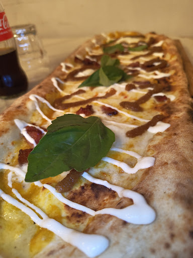 Cibo 4/5 perché il cibo è meraviglioso, le pizze sono veramente buone, ma non tutte le pizze, esempio: La Stra Nduja, non è per niente piccante, c'è il salame piccante, sottile sottile, nduja sta dentro i bordi, non si sente il piccante, la pizza non si presenta esteticamente bene.