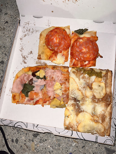 Read morePizzeria soprattutto da asporto, ma con qualche tavolino addossato alle pareti presso il quale sedersi stretti stretti per mangiare un trancio di scrocchiarella variamente condita. L'impasto è ottimo, fragrante, leggero, croccante e può essere anche ai cereali. Per i condimenti c'è solo l'imbarazzo della scelta e al bancone arrivano varietà a ripetizione. L'ambiente è piccolo e si capiscono i motivi per cui, soprattutto il sabato sera, si riempie in maniera inverosimile, mentre le due signore che servono non perdono mai la calma e provvedono ai clienti. I tranci generalmente costano 2.50, ma ce ne sono altri più sfiziosi a 3 euro. Con 10 euro si mangiano tre bei tranci e si beve una bibita: anche per questo,...