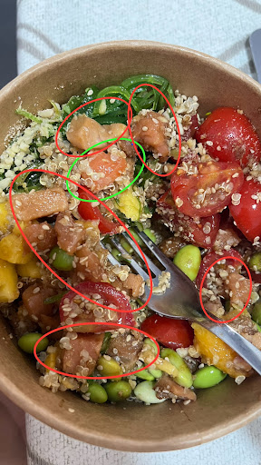 Read morela qualità di questo cibo è diminuita molto! L'ho preso prima, la qualità era accettabile. Oggi ho preso salmone crudo, ma il salmone non era crudo, solo 2 pezzi, il resto del salmone non sembrava fresco e per questo era marinato, inoltre il sapore non aveva il sapore del salmone crudo. Nella foto potete vedere che il crudo è di un colore completamente diverso. Il cinoa non aveva un odore fresco. È triste che non avvertano sulla freschezza di alcuni prodotti solo per venderli. P.S. i choose always this sauce and other salmons were good(it cant change color in 5 min) and also remember how it was first time, the same ingredients, and in other restaurants also does not change color and taste of not fresh. your proof and defense of food that was not of good quality does not make you a plus in the rating. Rather a minus, since you do not do better for the client and do not look for ways to improve, only defend your...