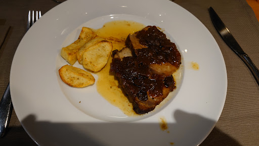 Cibo: pur essendo un Ristorante di classe, è possibile assaporare piatti tradizionali calabresi rivisitati in maniera raffinata. Abbiamo diviso un primo in due, scegliendo degli spaghettoni (al dente) con datterini rossi, ndujia e scaglie di ricotta. Pur non essendo molto amante del piccante, ho assaporato ogni singola forchettata. Ottimo. Per quanto riguarda i secondi, abbiamo scelto due secondi di carne comprensivi, entrambi, di patate novelle al forno. Abbiamo scelto entrambi involtini: involtini di manzo con caciocavallo e mortadella + involtini di maiale con scamorza affumicata e ndujia. Gli involtini con il caciocavallo mi hanno portato in un'altra dimensione: si scioglievano in bocca ed è stata quasi un'esperienza sensoriale superlativa, tra vista, gusto ed olfatto. Davvero complimenti allo Chef!